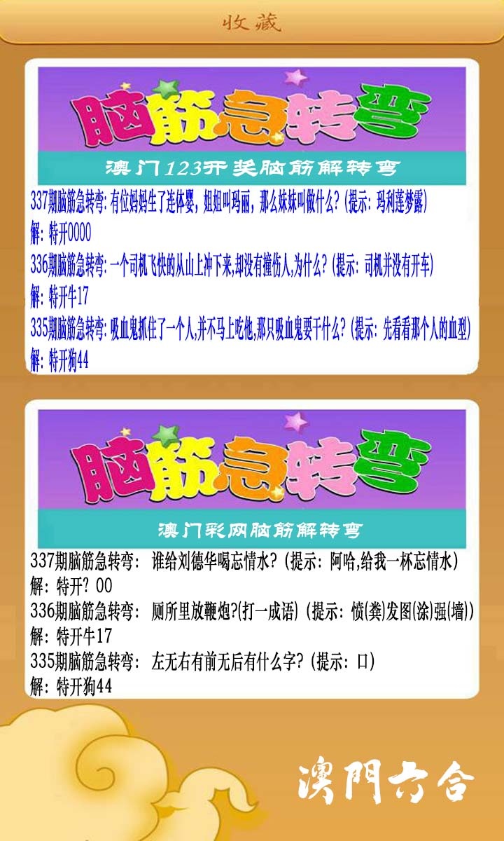 337期澳门脑筋急转弯[图]