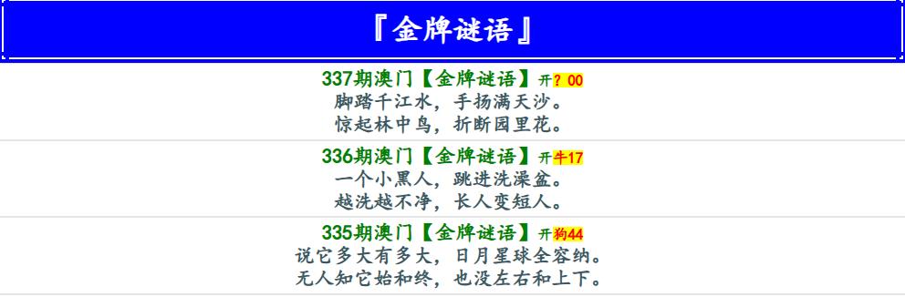337期金牌谜语[图]